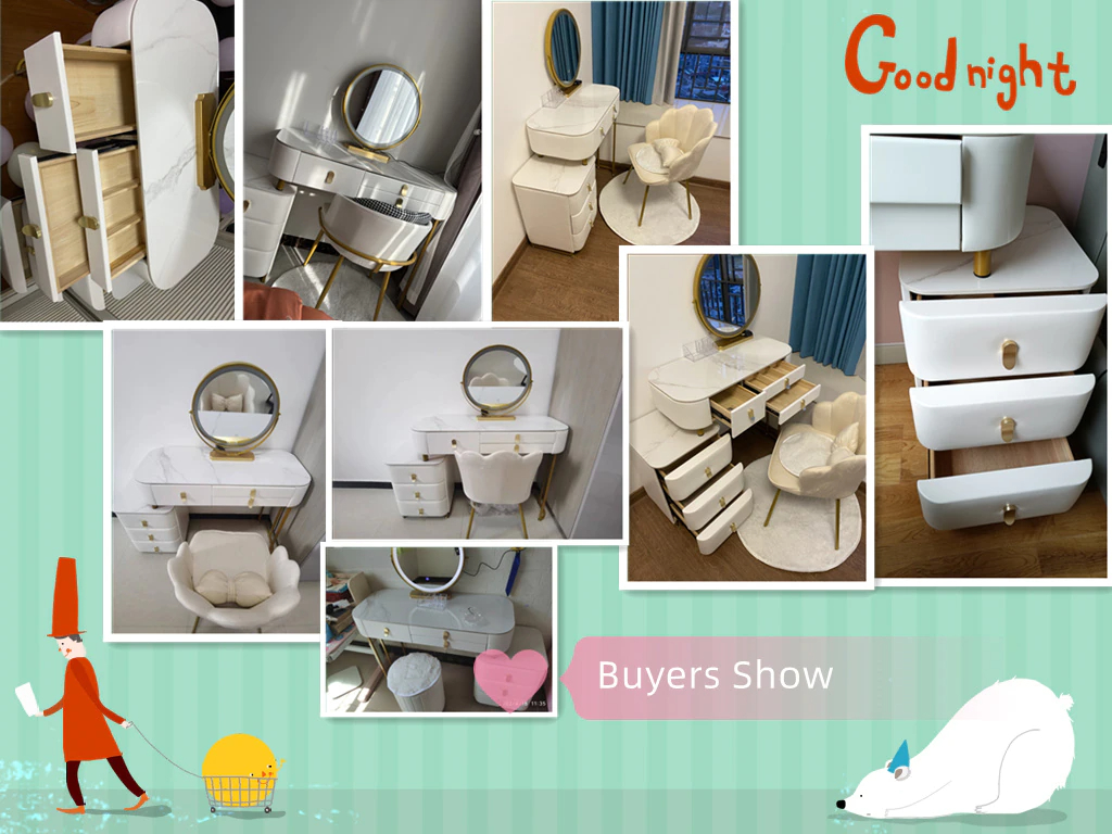 2. The desktop design of piano paint and the large capacity of multiple drawers can meet all your needs. The table top can hold various items. This dressing table even becomes your home decoration with its classic appearance.