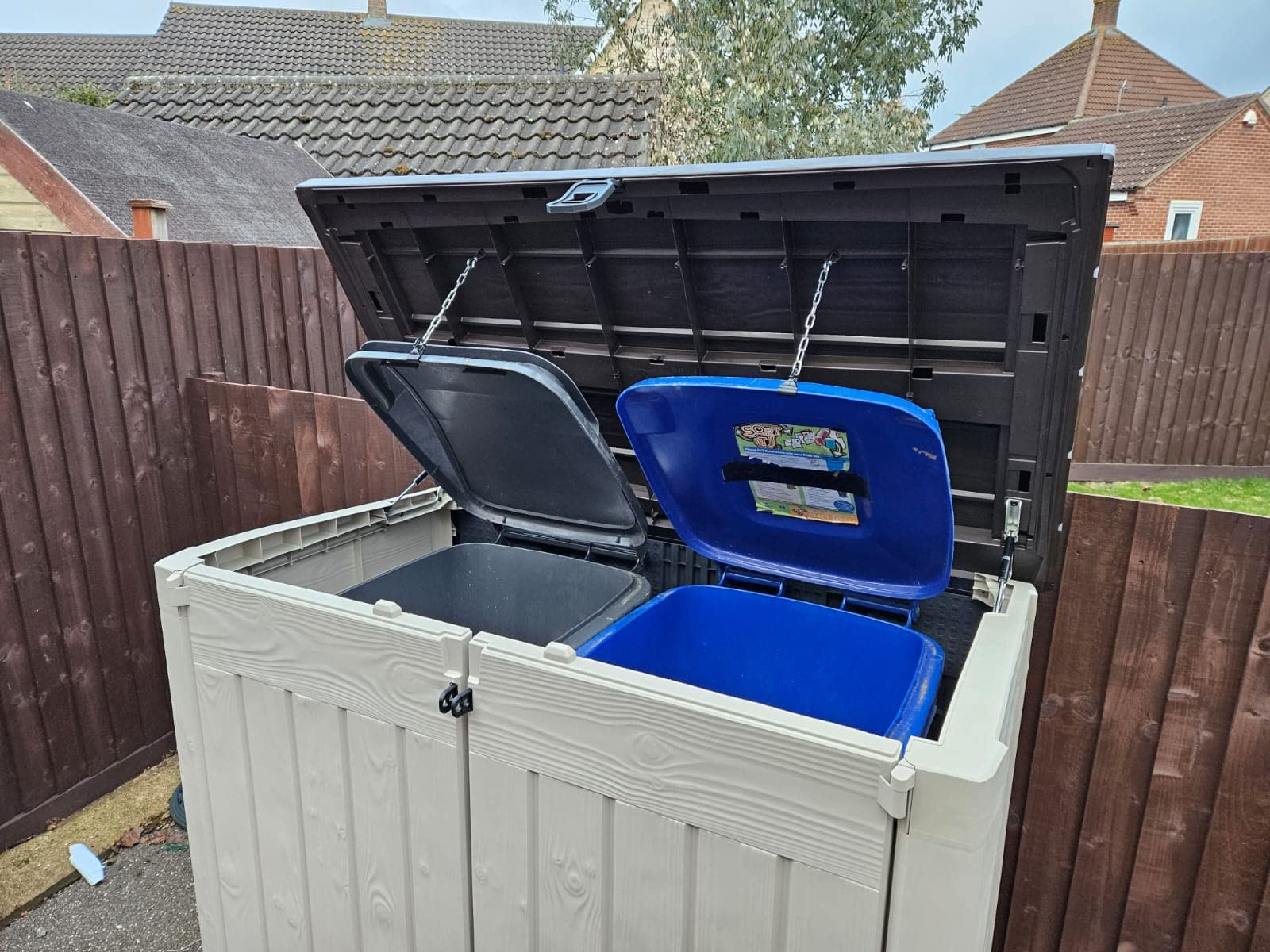 Hydraulic pistons for easy access and a bin-opening kit that lets you open your wheelie bins just by lifting the lid.